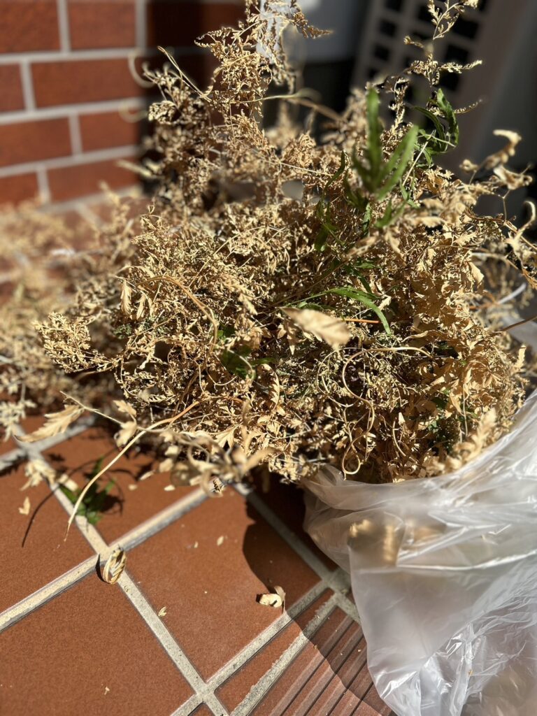 外の養生が取れて手が届くようになったので集めて捨てました。